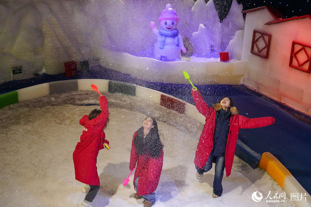 2026年1月27日,在浙江宁波江北区甬江街道达人村,市民在室内冰雪乐园开心玩耍。人民网 章勇涛摄
